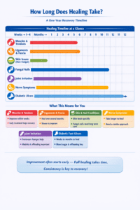 - Diabetic foot ulcers can take weeks to several months to heal. Progress depends on circulation, blood sugar control, infection management, and how well the area is offloaded.